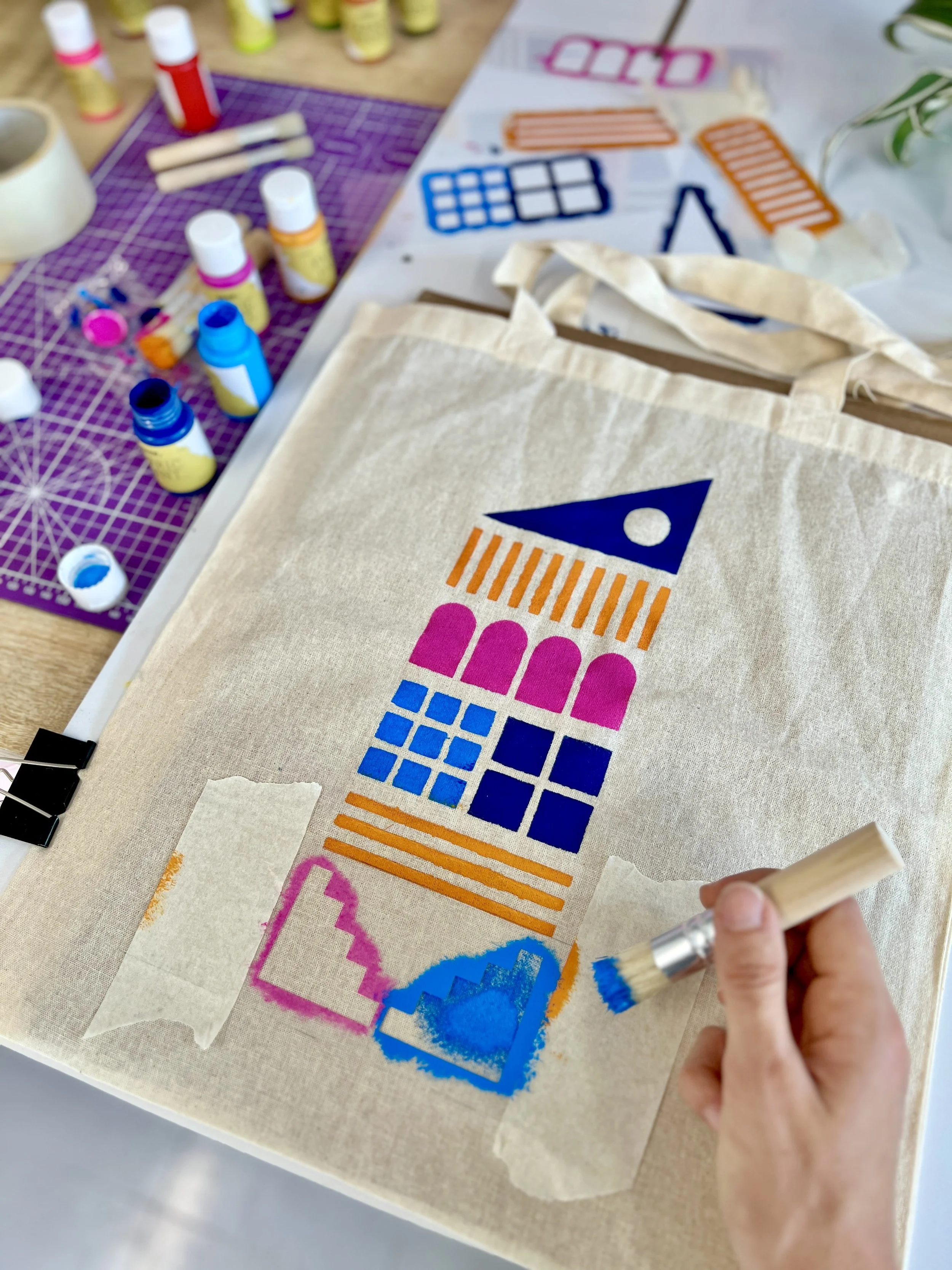 I handled the entire process: concept development around the Brooklyn theme, stencil design and testing, logistics and material sourcing, and finally, leading the workshop for an intergenerational audience. A project combining pedagogy, design, and event organization.